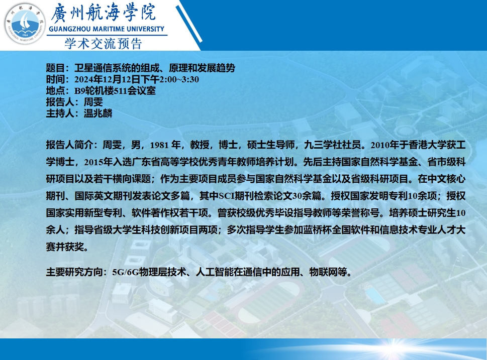“低空翱翔”:周雯教授《卫星通信系统的组成、原理和发展趋势》