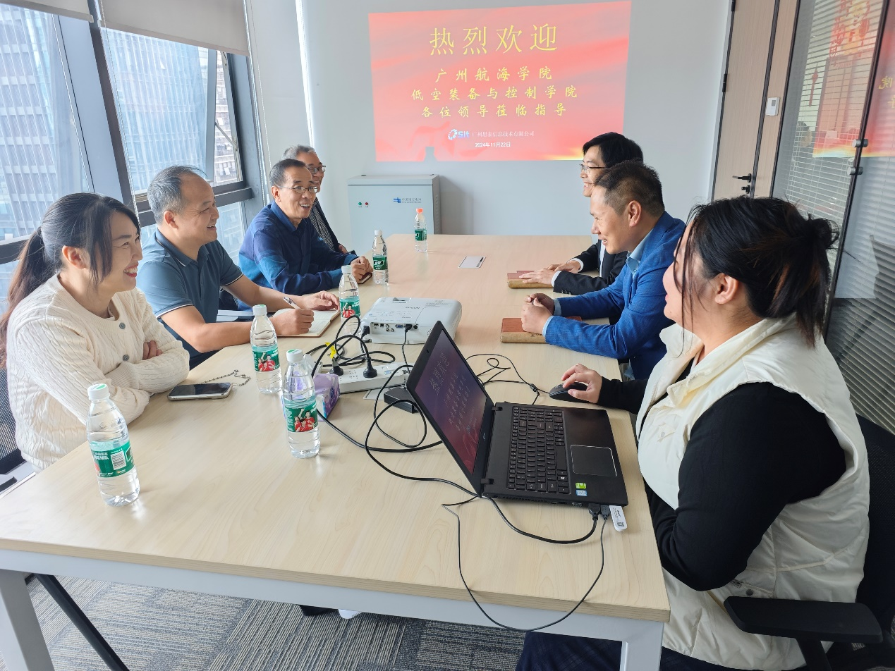 11月22日,低空学院党委书记温兆麟、副书记李坚、副院长雷学生、电气工程专业负责人李瑞、毕业班辅导员贾小爽一行前往广州思泰信息技术有限公司调研。公司董事长余南华对我院一行人的到来表示欢迎,并详细介绍了公司的发展情况、业务情况、人才需求等。余克南表示希望校企双方在人才培养、科技创新、社会责任等领域深化交流合作,携手服务好区域经济社会高质量发展。