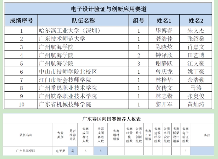 3月—6月,学院余金栋、闫瑞瑞、田瑞利三位教师共指导6名学生参赛。备赛期间,团队深耕细作、全力冲刺。赛场之上,学院选手从全省40余所高校、422名参赛者中突围:电子类成图封闭赛道获个人一等奖1项、二等奖1项、三等奖3项;电子设计验证与创新应用赛道拿下全省第三、第四、第五名。凭借优异表现,5名选手获广东省图学学会推荐,将代表学校征战国赛。