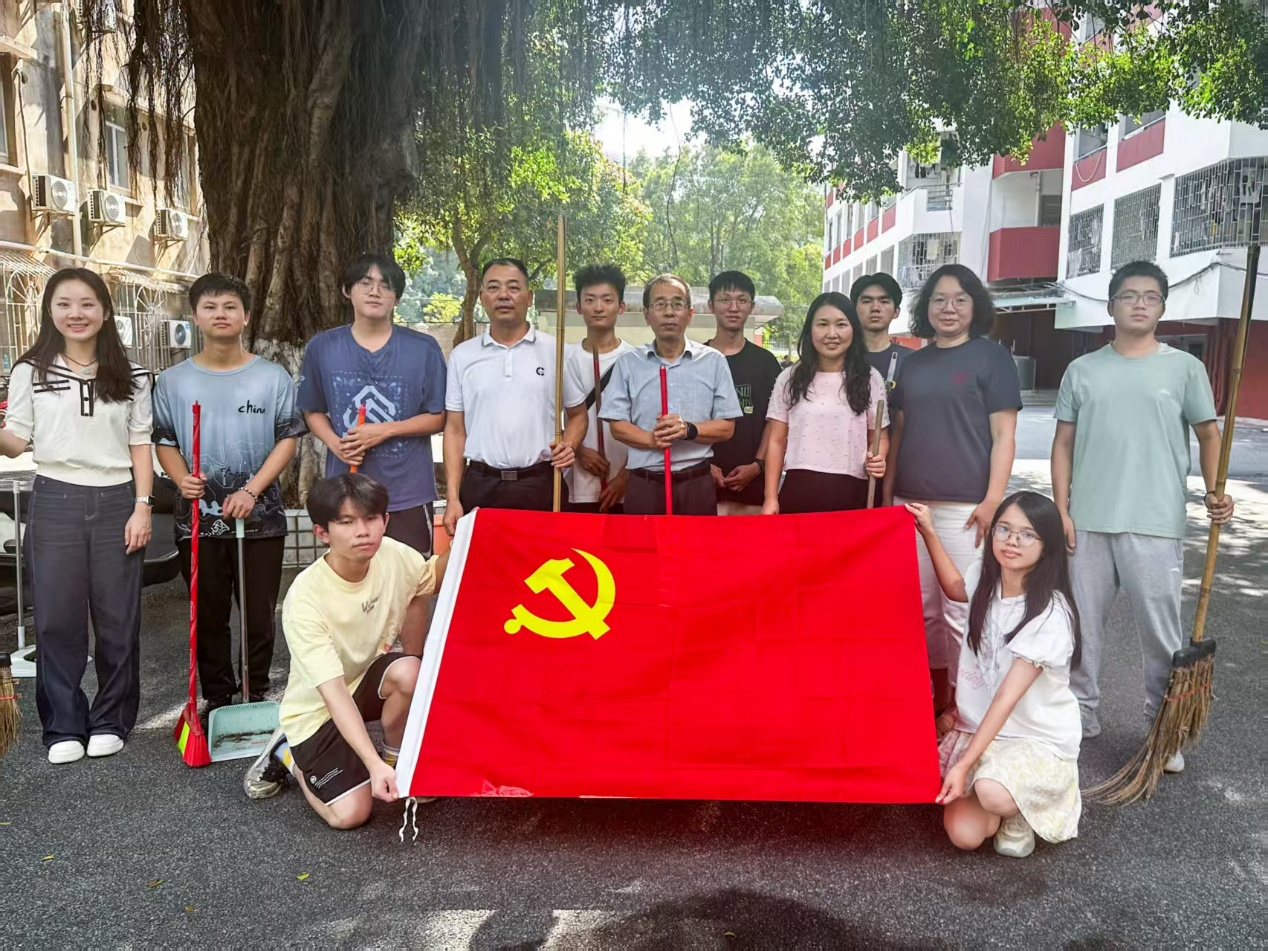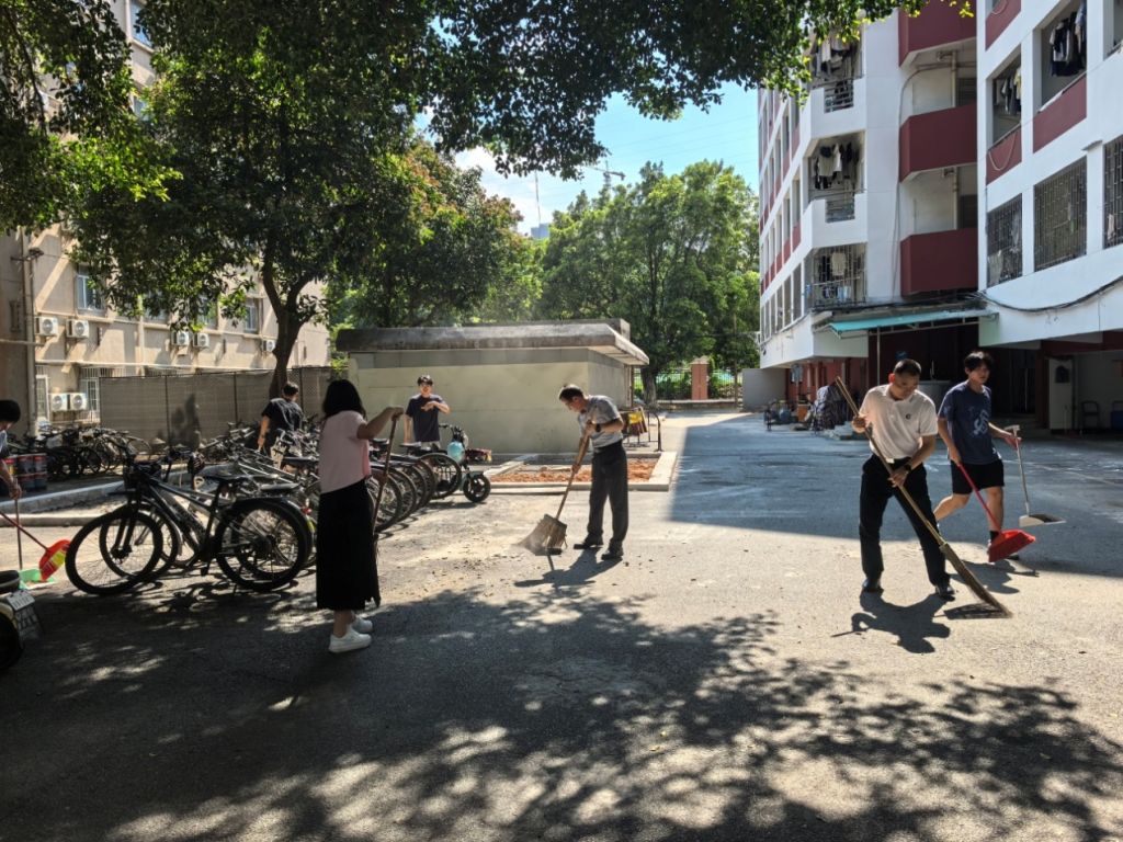 活动中,学院老师带头在前,用扫帚清扫路面的身影成为现场标杆;青年学生活力满满,在清扫、归置等环节展现青春担当。大家在烈日下坚守,以“一尘不染”的标准打磨校园环境,让生活区面貌焕然一新。