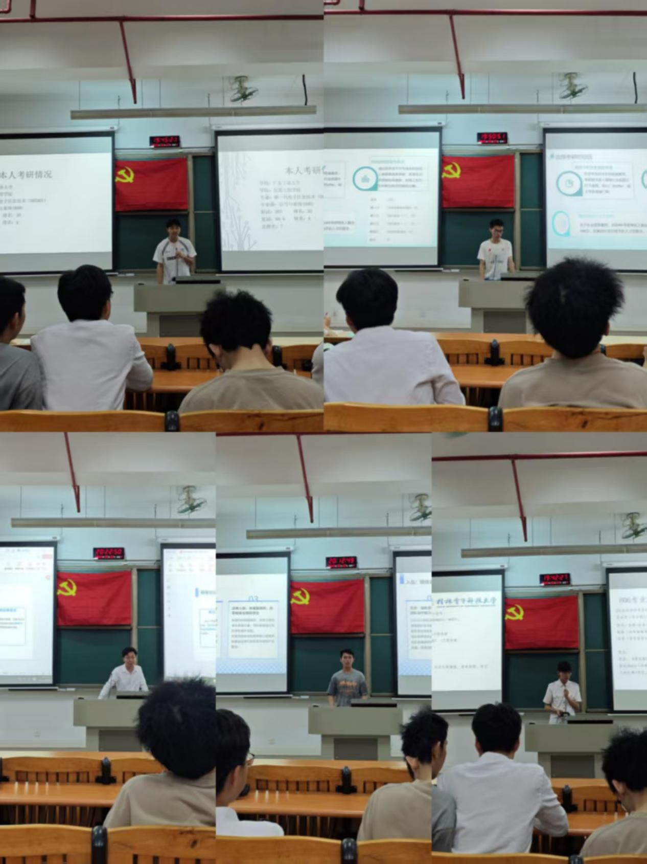 在考研经验分享环节,桂林电子科技大学拟录取生吴圳升系统介绍了“三段式”备考方案,强调学科竞赛对复试的加分作用;广东工业大学拟录取生薛佳胜则重点讲解了真题训练方法,建议考生建立错题分析机制;广东工业大学拟录取生黄塾宾从目标院校选择、时间规划、心理调适分享自己的经验。