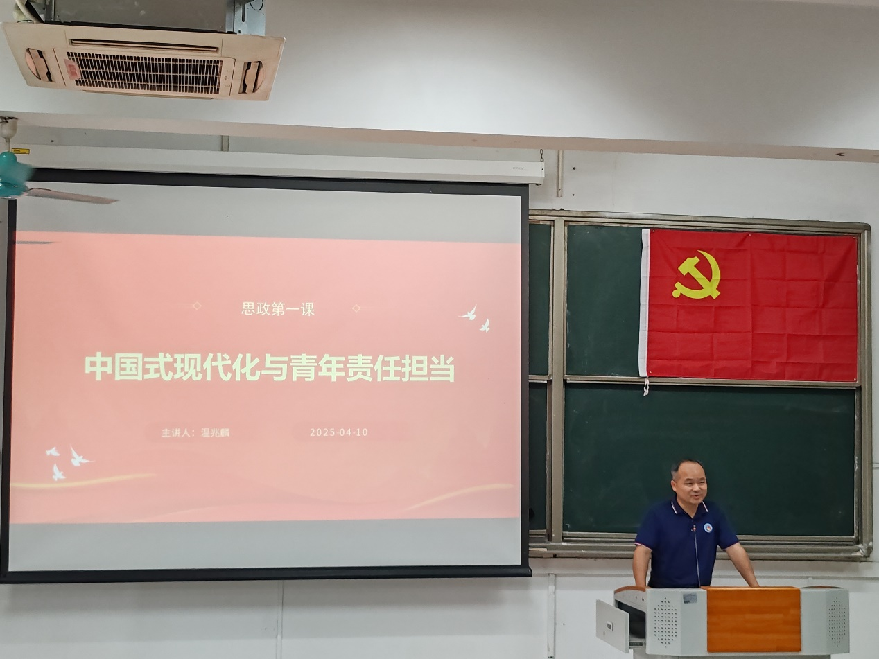 4月11日下午,yl6809永利检测中心党委书记温兆麟在教学楼110室为学院党课培训班同学讲授了2025年春季学期“思政第一课”。本次课程以“中国式现代化与青年责任担当”为主题,旨在引导青年学子深刻理解中国式现代化的内涵,明确自身肩负的时代责任。