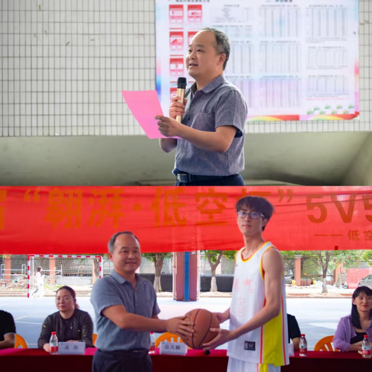 温兆麟为比赛授球,将象征着团结与拼搏的篮球郑重交至运动员代表手中,隆重宣布篮球赛正式开幕!现场掌声雷动,宣告这场为期数周的体育比赛正式启航。