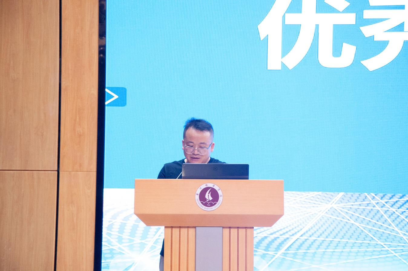 黄斌(1991级船舶无线电通讯专业,广州中海电信有限公司 船舶信息科技中心总经理)重点讲述了就业过程中遇到的挑战与应对方法。他引用“路漫漫其修远兮,吾将上下而求索”,勉励学生成才之路从非一帆风顺,唯有保持敏锐洞察与坚定毅力,在艰难环境中磨练意志、提升能力,方能找到属于自己的人生舞台。